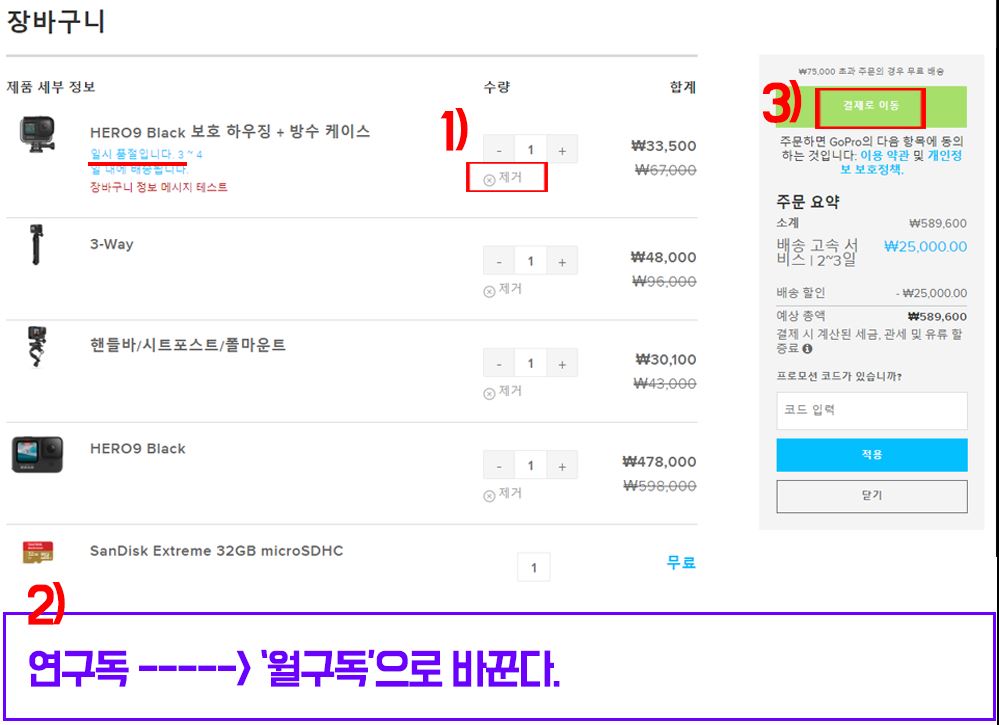 고프로 공홈 주문. 월구독과 연구독과 비교