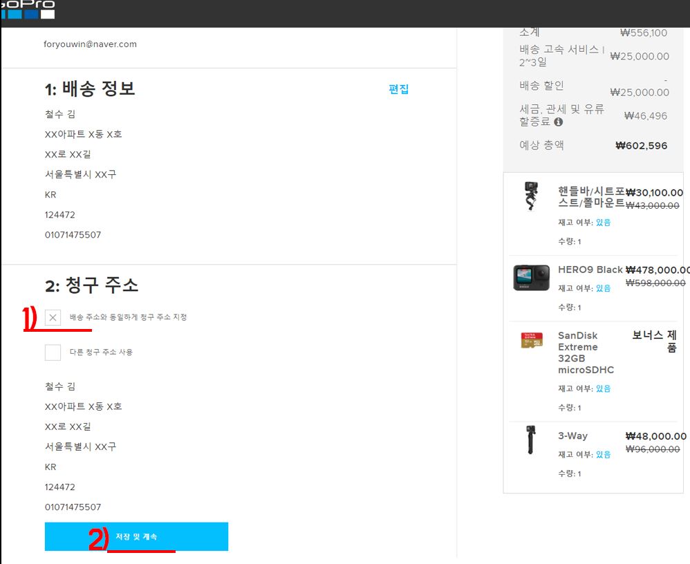 10. 청구주소 정확히 몰 말하는지 모르겠는데 그냥 1번 배송주소와 동일하게 했어요. 그리고 결제하면 끝!