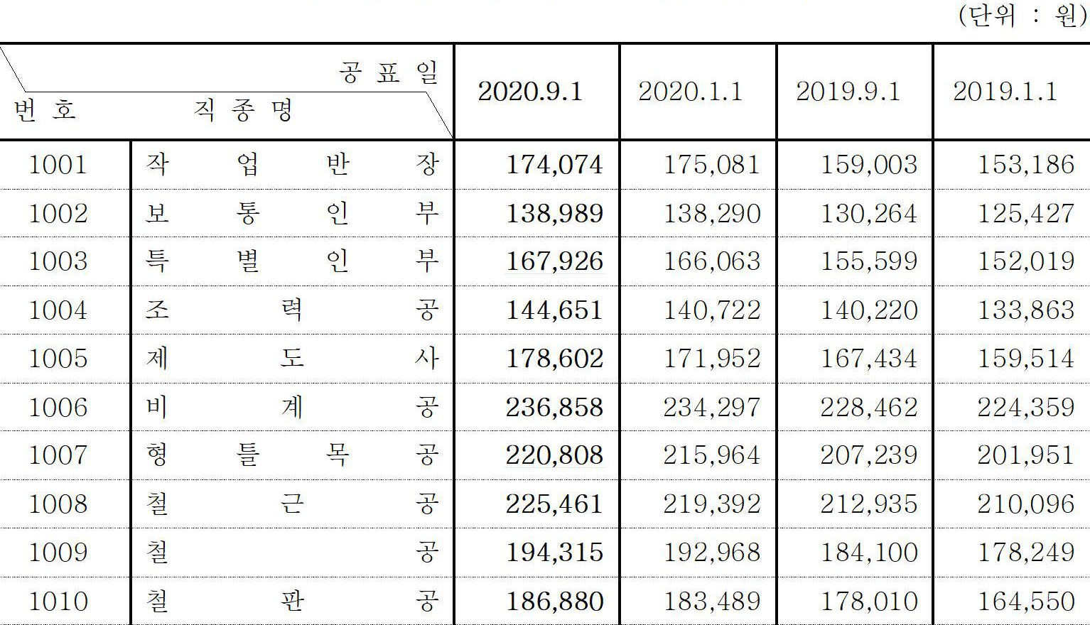 -. 차기 노임단가(임금공표) 예정일 : 2021년 1월 1일.