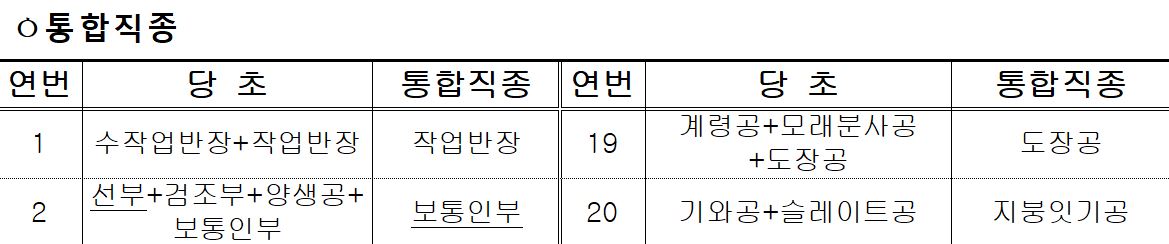 "통합직종/변경직종/신설직종"