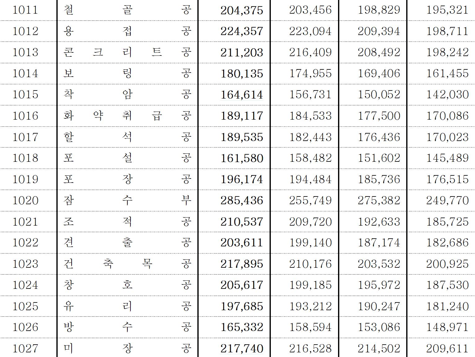 ※ 표시된 노임단가(3011. 특수화공)는 최근 조사에서 조사되지 않은 직종으로, 가장 최근의 조사결과('17.9.1 적용) 값을 표기하오니 이용상 주의하시길 바랍니다.