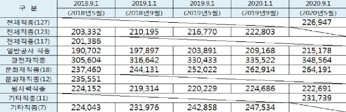 "2020 하반기 개별직종 노임단가 (노임임금)"