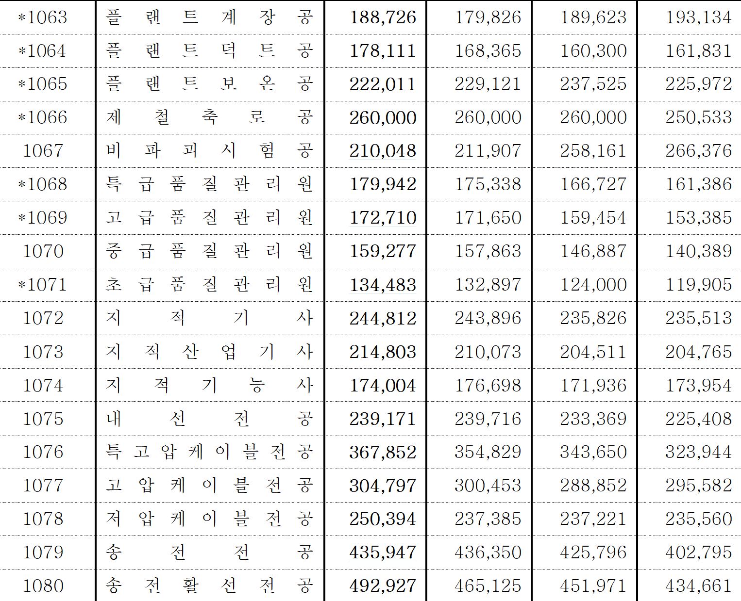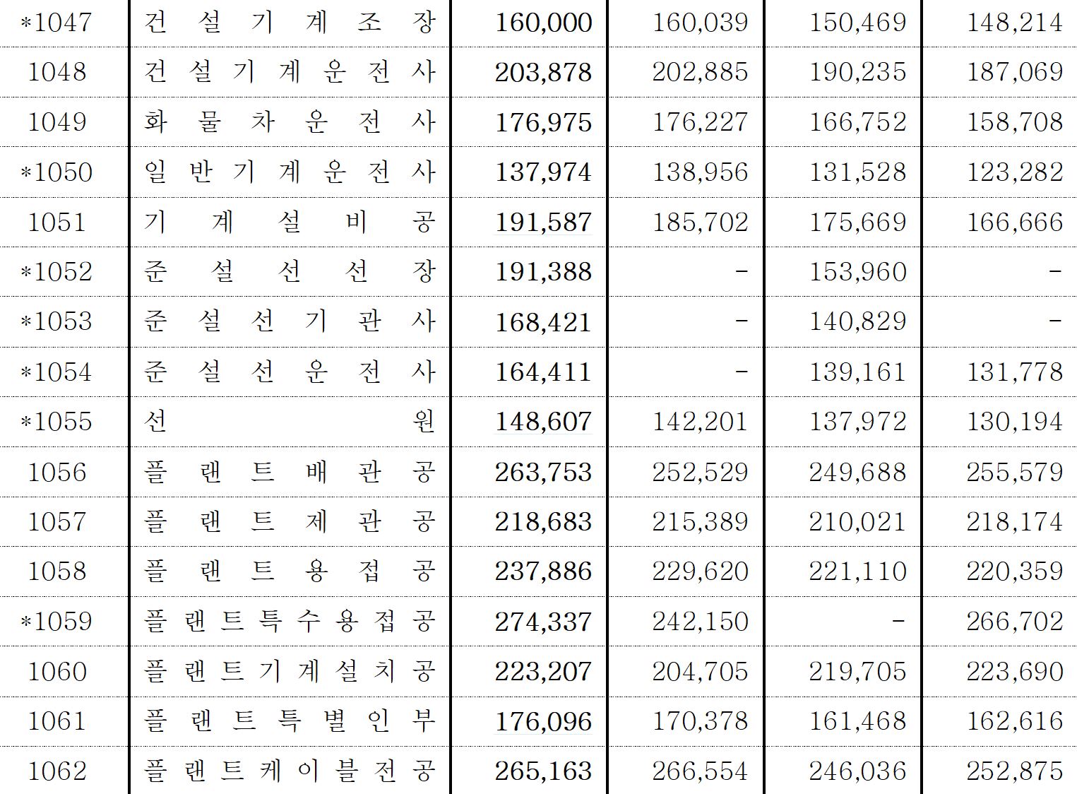 ** 표시 직종은 조사되지 않은 직종이므로 그 적용은 앞의 '이용상의 주의사항'을 참고하시길 바랍니다.