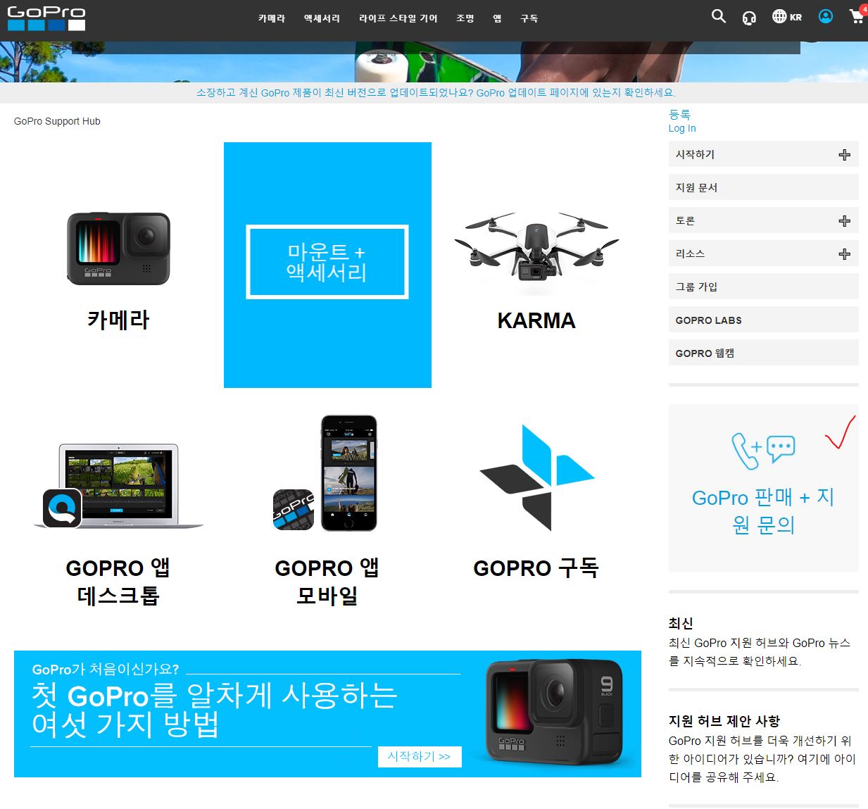 고프로 액션캠 공식홈페이지 고객센터 (고객상담) '채팅문의' 이용방법