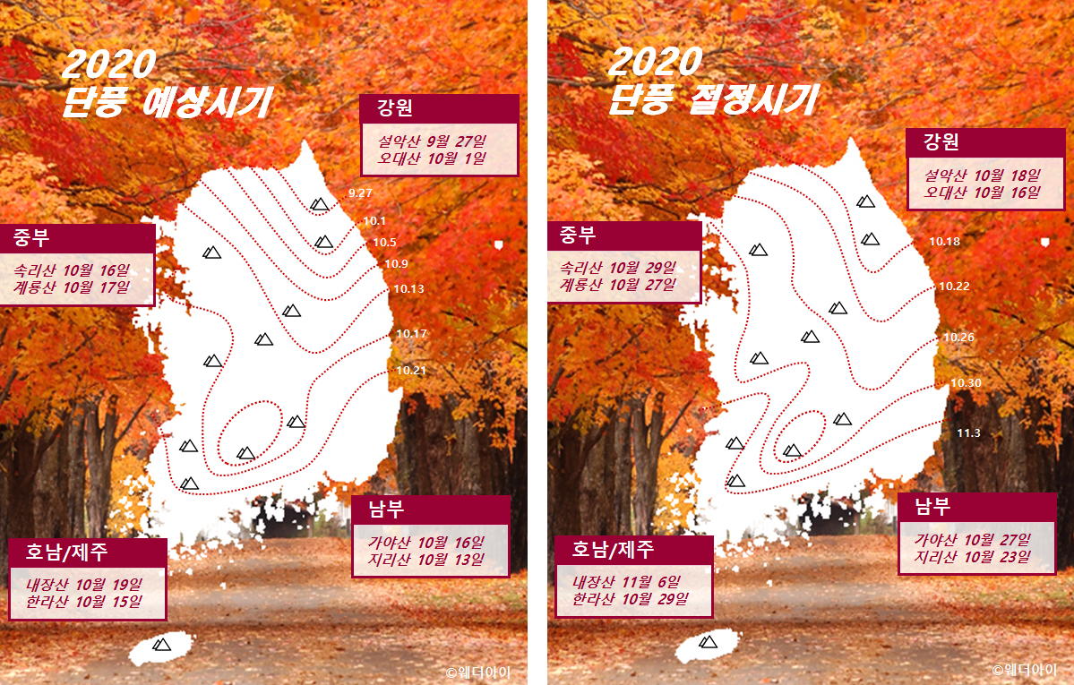 2020 단풍시기, 2020 단풍절정시기
