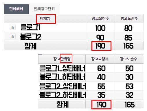 가령 제가 애드핏을 게재할 수 있는 블로그를 두개 가지고 있다면 각 블로그가 매체가 되는 것이죠. 광고요청수는 이러한 매체에 달린 각각의 광고단위들에서 요청된 광고요청수들이 모두 더해져 하나의 매체의 총 광고요청수가 됩니다.
