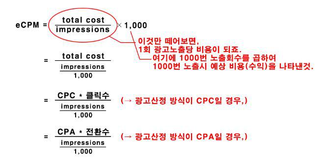 = 총 광고 비용(수익) / 총 유효 노출수 * 1000