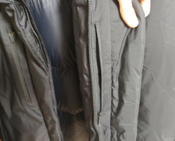 이러한 디테일한 정보가 구매사이트에 없어서 고민이 많았는데요. 실제 제품을 받아보니 속주머니가 하나 있더라고요. 속주머니는 지퍼안쪽이 아니라 지퍼와 이중덮개 사이에 있어서 안주머니를 사용하기 위해 지퍼를 열 필요가 없어요.