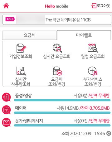 2. 헬로 모바일 알뜰폰 실시간 요금 조회 / 실시간 사용량 조회