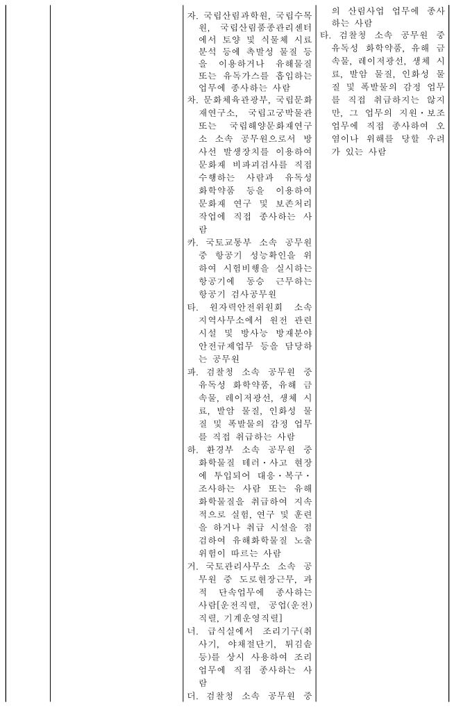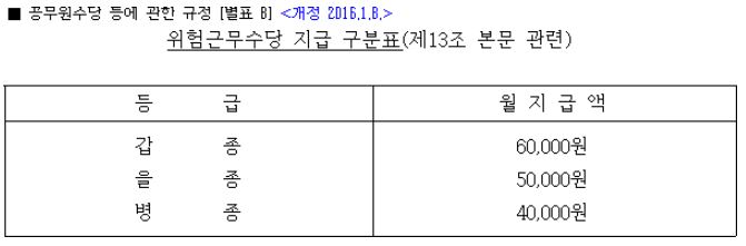 공무원 위험근무수당 병종, 을종, 갑종 (공무원수당 등에 관한 규정)