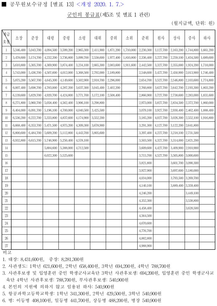 10) 군인의 봉급표