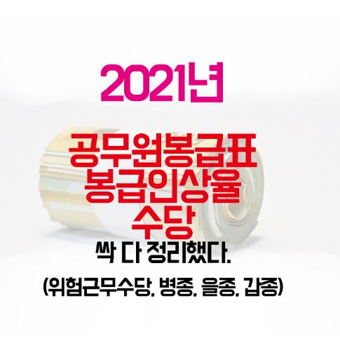 얼마 전, 2021년 공무원 봉급 인상에 대한 공지가 있었는데요. 이번 글에서는 2021 공무원 봉급인상율 및 봉급표 그리고 위험근무수당에 대해 알아보겠습니다.