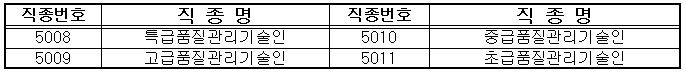 통합직종, 변경직종, 신설직종