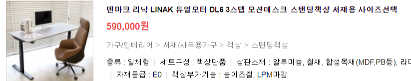 3. 모션데스크 가격 : 100만원 이하. 하지만 최대한 싸면 이득이란 생각으로!